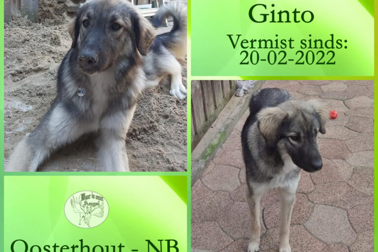 Er kwam een melding dat Ginto zou rondlopen op de Karpedonkse plassen in Eindhoven. Ginto is vermist geraakt in Oosterhout hij heeft al vele kilometers afgelegd. In de afgelopen 7 dagen ze is vermist geraakt 20 februari 2022. Ilse en Bram zijn ter plaatse gegaan om te kijken of het idd om Ginto zou gaan,…