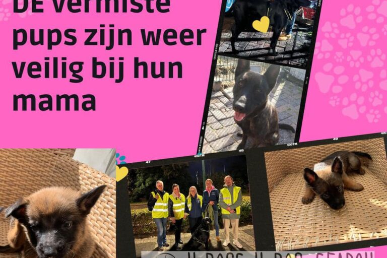 Vanmiddag werden we gebeld voor 2 pups die vermist waren in Veldhoven. s’Avonds zijn we meteen naar de locatie gegaan. De pups zijn net 4 weken oud, van de 6 pups waren er 2 weg. Je vraagt je af hoe is het mogelijk, maar om uit te sluiten of ze zijn meegenomen zijn we met…