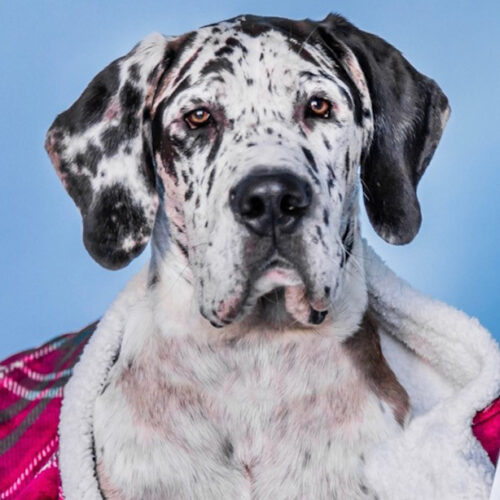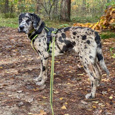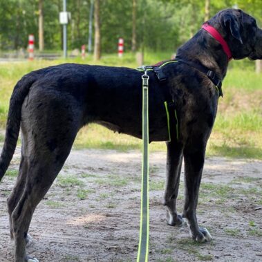 Guus is een Duitse Dog kruising van 1 jaar oud.