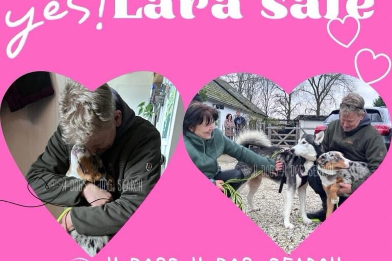 Gisteren wist Amirah zich uit haar halsband te rukken toen ze schrok van onverwacht vuurwerk.Gelijk is haar baasje met familie en vrienden gaan zoeken maar helaas lukte het niet om haar veilig te krijgen.Later op de dag werden de honden aangemeld bij waar is onze angel die meteen een zoekapp gestart zijn.Gelukkig sloten er mensen…
